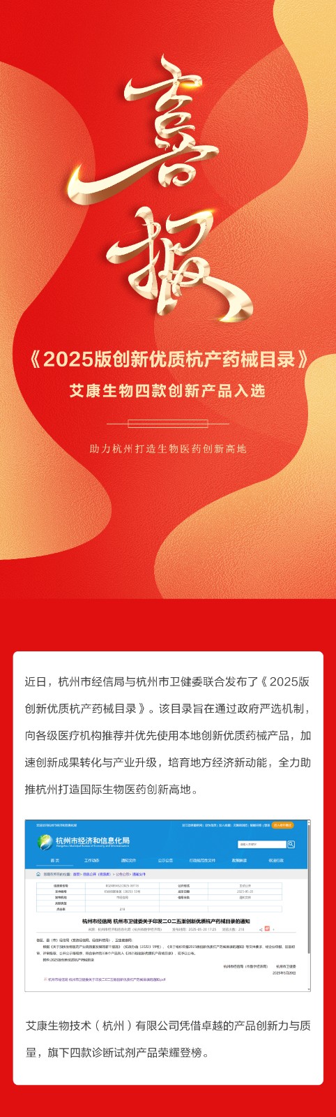 榮登杭產(chǎn)創(chuàng)新目錄,艾康生物聚力深耕助力健康高地